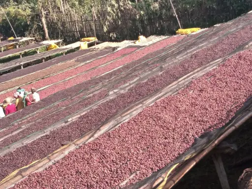 Deze koffie is natural processed: de bessen worden in hun geheel gedroogd in de zon. Dit geeft de boon zijn kenmerkende volle body en fruitige, wijnachtige tonen. Daye Bensa staat bekend om zijn strikte sortering en zorgvuldige droogmethodes, waardoor een consistente topkwaliteit wordt bereikt.